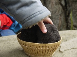 Ad ogni passo è una sorpresa, rocce giganti ricoperte da soffice muschio, profumo di menta selvatica, abeti maestosi, fiori colorati, curiose palline che i bambini non vedono l’ora di raccogliere dai rami delle querce. Scopriamo che si chiamano “Galle” e che sono una difesa naturale della pianta: quando un insetto tenta di mangiare le foglie dell’albero questo produce naturalmente un liquido dolce che attraee l’insetto, e al contempo gli costruisce attorno un guscio (ed ecco la magica “pallina”). Quando la pianta decide di non dare piu nutrimento all’insetto questo fa un buco nella galla ed esce (quanta intelligenza nella natura!).