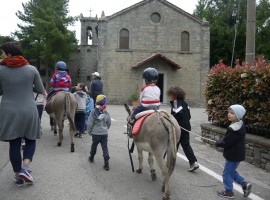 Riuscite ad immaginare la sensazione incredibile di cavalcare un animale mai visto, se non sui libri di favole? Ricordo di averla provata in Tunisia sul dorso altissimo di un dromedario, ma la rivivo ora tra i boschi delle foreste Casentinesi quando i bambini salgono per la prima volta sul dorso di due simpatici asinelli, Katia e Fabio.