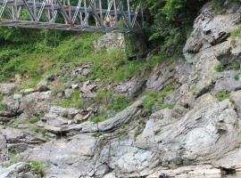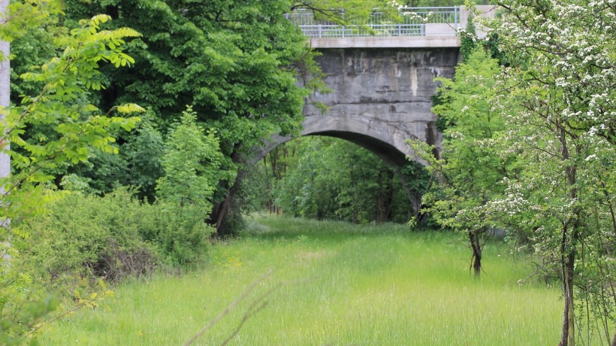Una vecchia ferriera che costeggia anch’essa il fiume indicherà il punto da cui si perviene al caratteristico ponte che attraversa il torrente Orba. Giunti sull’altra sponda si affiancano delle costruzioni, Case Quizza e si attraversa una vecchia mulattiera che porta ad un segnavia.