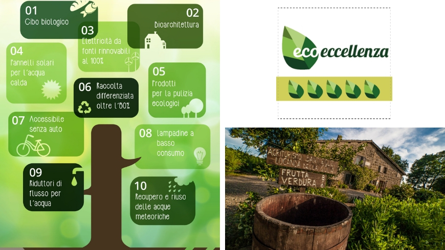 Perché è green: tutti gli edifici sono provvisti di pannelli fotovoltaici e solari, collegati ad una caldaia alimentata grazie agli scarti vegetali. È presente una zona di fitodepurazione e un laghetto per la raccolta delle acque piovane da riutilizzare per l’irrigazione dell’orto. Nel recupero degli edifici sono stati usati materiali eco-compatibili e naturali.