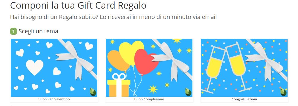 Puoi acquistare la tua Gift Card qui, scegliendo l’importo che preferisci e aggiungendo una dedica o un messaggio personalizzato.