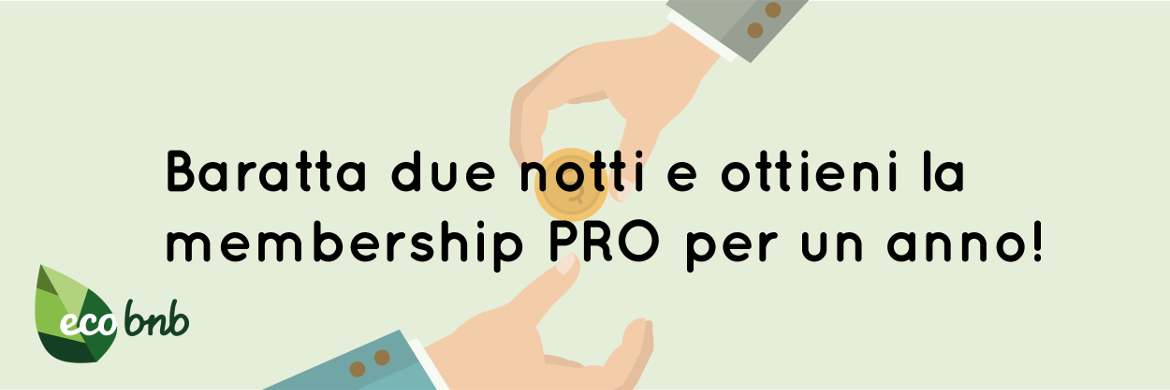 L’iniziativa speciale “Baratta due Notti”, consente alle strutture ricettive che possiedono i requisiti e che hanno aderito all’iniziativa entro il 31 agosto 2017 20 giugno 2016 oppure entro il 17 ottobre 2016, di ricevere visibilità sul sito di Ecobnb (https://ecobnb.com) tramite “Membership PRO” (maggiore visibilità e nessuna commissione) in cambio del baratto di: