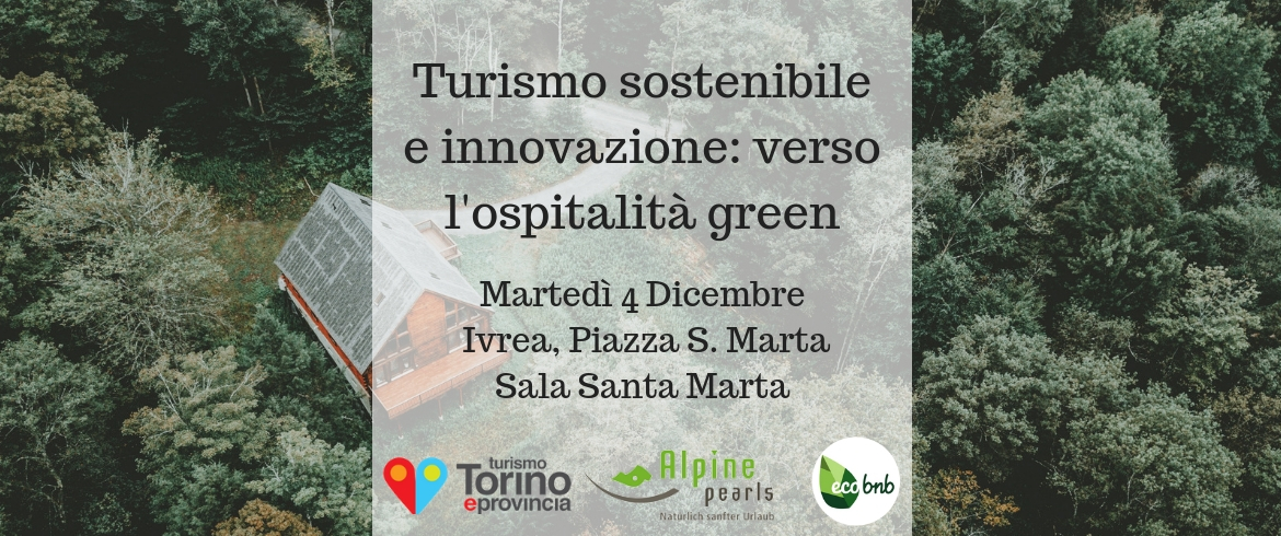 Un workshop gratuito dedicato al turismo sostenibile, all’innovazione turistica e all’ospitalità green. Si svolge ad Ivrea (Torino) martedì 4 dicembre 2018, ed è organizzato in collaborazione con Perle Alpine e con Turismo Torino. Si parlerà di turismo sostenibile, delle nuove tendenze del viaggio, e delle opportunità per destagionalizzare. Si approfondirà il tema dell’ospitalità green, condividendo i 10 passi da intraprendere per rendere la propria struttura ricettiva eco-friendly. Si parlerà anche di webmarketing e disitermediazione (se possibile), e si condivideranno buone pratiche di turismo responsabile. Vi aspettiamo!